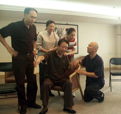 舞臺功力深厚的張喜前把原本喜劇色彩不太濃的大順設(shè)計(jì)得有聲有色。而老爺子張辛元11歲就拜師學(xué)曲藝,說學(xué)逗唱一身的絕活。這次在劇中扮演的劉大爺?shù)膽蚍莘浅V,而在排練中,性格開朗的老張也常常是戲里戲外制造笑聲的關(guān)鍵人物。