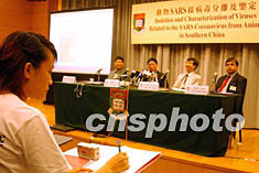 香港大學(xué)醫(yī)學(xué)院,九月五日在香港舉行“ 動物SARS病樣毒分離及鑒定”研究報告會,報告指出“活畜零售可能是傳播SARS病毒的主要途徑”。圖為香港大學(xué)醫(yī)學(xué)院微生物學(xué)系四位知名教授在會上。中新社記者:錢興強
