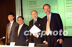中銀香港﹙控股﹚有限公司于9月5日舉行專責(zé)委員會(huì)調(diào)查報(bào)告新聞發(fā)布會(huì),就周正毅貸款調(diào)查報(bào)告及新農(nóng)凱事件,響應(yīng)記者問(wèn)題。圖為【右起】專責(zé)委員會(huì)特別顧問(wèn)費(fèi)蘭特、召集人梁定邦、馮國(guó)經(jīng)及單偉建出席記者會(huì)。作者:洪少葵