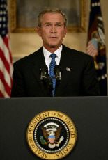 布什周日晚黃金時段在白宮發(fā)表十五分鐘的電視講話,闡述美國對伊政策。他沒能回答民眾關(guān)心的美軍何時從伊拉克撤回?伊拉克的大規(guī)模殺傷性武器在何方?薩達姆下落何處等問題。相反,布什把伊拉克描述成反恐中央前線,并有不惜代價,不達目的不罷休之意。