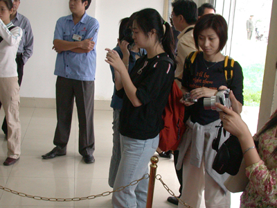 9月9日,來自新華網(wǎng)、人民網(wǎng)、中新網(wǎng)等15家國(guó)內(nèi)知名網(wǎng)站的記者,參觀訪問了中國(guó)重汽。圖為記者團(tuán)的女記者在采訪中。中新社記者 宋方燦攝
