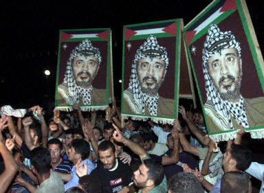 就在以色列做出上述決定的同時(shí),阿拉法特依然受到數(shù)千支持者的擁戴,當(dāng)他在周三走出辦公總部時(shí)無數(shù)的支持者在向他歡呼。身旁有保鏢保護(hù)的阿拉法特向支持者拋去飛吻,并做出勝利的姿式。在加沙城市中心,5000多人走上街頭進(jìn)行游行表達(dá)對阿拉法特的支持。(春風(fēng))