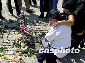 世貿(mào)廢墟的最底層今天仍舊對(duì)罹難者家庭開(kāi)放,鮮花和眼淚使這里成為悲痛的中心。人們不僅將鮮花放置在官方事先準(zhǔn)備好的花壇中,還在花壇周?chē)悯r花和石子裝飾出自己心中的祭壇。一個(gè)印度族裔家庭在鮮花堆置的“紀(jì)念碑”前為親人祈禱,媽媽說(shuō):“你知道嗎,我們每天都在祈禱希望你能重新回來(lái)!币粚(duì)失去媽媽的女兒則用筆在花壇邊沿上寫(xiě)給媽媽一句話:“我們想你!”