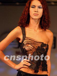 香港服裝設(shè)計(jì)協(xié)會(huì)副主席馬偉明設(shè)計(jì)的前衛(wèi)女內(nèi)衣,十七日在青島國(guó)際時(shí)裝周上展示。中新社記者:宋吉河