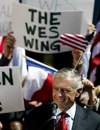 克拉克曾經(jīng)任職北約的司令官,現(xiàn)已退役,他在本周三宣布參選,不諱言需要金錢(qián)資助。他說(shuō):“這里是美國(guó),有錢(qián)好辦事,我需要你們的支持。”