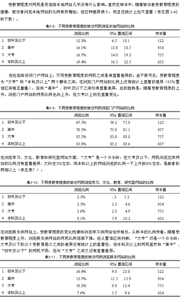 經(jīng)常訪問(wèn)的網(wǎng)站·文化程度的差異
