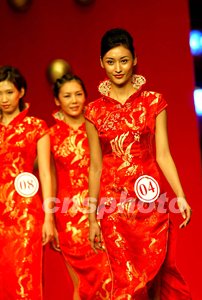 關(guān)琦展示旗袍裝。中新社記者:毛建軍