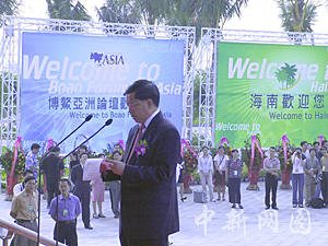 由中遠(yuǎn)集團(tuán)投資建設(shè)的博鰲亞洲論壇永久會(huì)址——博鰲亞洲論壇國(guó)際會(huì)議中心二十二日揭幕,博鰲亞洲論壇秘書(shū)長(zhǎng)龍永圖在揭幕典禮上致詞。中新社記者 關(guān)向東 攝