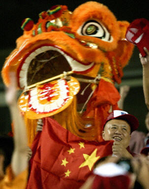 北京時間今天中午,中國隊在本屆女足世界杯的處子戰(zhàn)中1-0力克加納隊。賽后,興奮的中國球迷舞起了獅子,慶祝中國姑娘們的勝利。