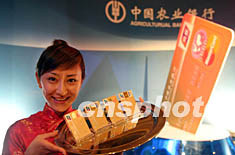 九月二十二日,中國農業(yè)銀行在北京舉行發(fā)卡儀式,推出其信用卡產品——中國農業(yè)銀行金穗卡(貸記卡),持卡人最高可獲得五萬元人民幣的授信額度,無須預先存款即可在規(guī)定額度內消費、取現(xiàn)。中新社記者:盛佳鵬
