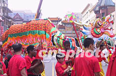 此次由大華盛頓地區(qū)一百多個華人社團聯(lián)合舉辦的中國文化節(jié),除了有中國文化工藝展覽和中華美食節(jié)外,最引人注目的是周日下午在唐人街舉行的盛大游行。醒獅起舞、大型花車、武術(shù)功夫、魔術(shù)雜技、民族盛裝、歌舞表演,吸引了數(shù)千華人、當?shù)厥忻窦坝慰。特別是廣東省僑辦贈送的一條長達七十米、需要三十四人共同舞動的巨龍,在唐人街上翻騰跳躍,把節(jié)日氣氛帶向高潮。