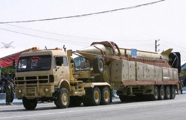 9月22日,在伊朗首都德黑蘭舉行的閱兵式上,一輛卡車運(yùn)載著該國(guó)最新研制的“流星-3型”中程彈道導(dǎo)彈。當(dāng)天,伊朗舉行活動(dòng)紀(jì)念兩伊戰(zhàn)爭(zhēng)爆發(fā)23周年,紀(jì)念活動(dòng)中展示了最新研制的“流星-3型”中程彈道導(dǎo)彈。該型導(dǎo)彈已經(jīng)于2003年7月裝備伊朗伊斯蘭革命衛(wèi)隊(duì)。伊朗一名高級(jí)官員當(dāng)天也表示,將減少與國(guó)際原子能機(jī)構(gòu)的合作。