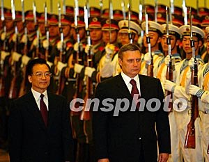 中新社北京九月二十四日電(記者齊彬)中國(guó)總理溫家寶今天在人民大會(huì)堂與俄羅斯總理卡西亞諾夫舉行會(huì)談。會(huì)談自始至終充滿了友好氣氛,兩國(guó)領(lǐng)導(dǎo)人在雙邊和國(guó)際問(wèn)題上取得了廣泛共識(shí)。