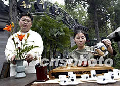 荷蘭國際球根花卉中心24日在北京和平藝苑組織插花技師與茶藝師進行同臺藝術(shù)表演,吸引了不少北京市民。中新社記者:趙振清