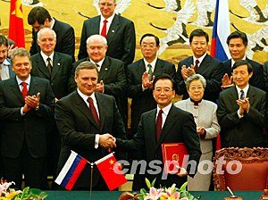 公報表示,雙方一致認(rèn)為,胡錦濤主席和普京總統(tǒng)確定的“使整個雙邊經(jīng)貿(mào)關(guān)系的發(fā)展取得突破并使經(jīng)貿(mào)額大幅增長”的目標(biāo)應(yīng)成為主要工作方向。為此,兩國總理認(rèn)為,應(yīng)集中力量共同開展以下合作: