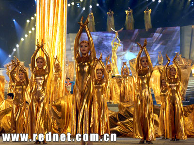 整臺(tái)晚會(huì)的核心是“中國年度電視禮贊”,通過情景劇、歌舞劇等各種演繹形式,《孝莊秘史》、《劉老根》、《DA師》、《中原突圍》等十部本年度中國最優(yōu)秀的電視作品被一一“微縮”到了舞臺(tái)之上。開局的解放軍戰(zhàn)士象古代輕功大師一樣在空中飛翔,以及重型坦克配合《DA師》情景劇緩緩駛上舞臺(tái)時(shí),強(qiáng)烈的視覺沖擊博得了現(xiàn)場觀眾如雷的掌聲。