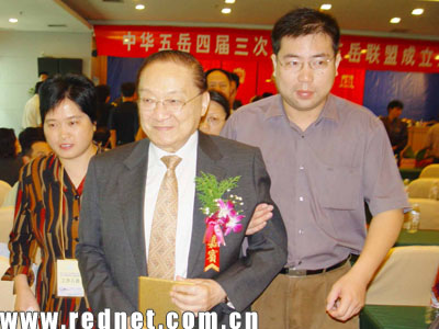 9月27日上午,推選產(chǎn)生的“五岳聯(lián)盟”首任執(zhí)行主席(盟主)劉麗華為首任“五岳聯(lián)盟”榮譽盟主金庸先生頒發(fā)了聘書,金庸先生將早已備好的一柄上書“五岳聯(lián)盟,天下稱雄”的雄心寶劍贈給首任盟主劉麗華。