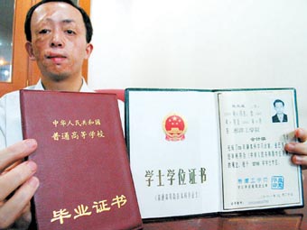 報道說,胡玉成憑著自己的毅力考取湘潭工學(xué)院,并以優(yōu)異的成績令老師和同學(xué)刮目相看。2001年6月,胡玉成畢業(yè)。第一次找工作,就讓胡玉成真正體會到了“丑男”人生的無奈。他把上百份簡歷投到用人單位,卻都石沉大海,杳無音信。堅強的他并未灰心喪氣。2001年7月,他把簡歷投遞到當(dāng)?shù)匾患疑虉鰬?yīng)聘會計職位,對方竟然說“你太丑了”。當(dāng)時,他淚水漣漣,甚至想到了死,可看到周圍的同學(xué)都落實了工作,他堅信自己不會被社會拋棄。