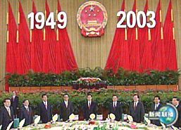溫家寶總理在招待會上講話。他說,今年是中國人民在中共十六大精神指引下闊步前進(jìn)的一年,是經(jīng)受嚴(yán)峻考驗(yàn)并取得重大勝利的一年。