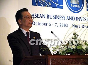 首屆東盟商業(yè)與投資峰會(huì)十月七日在印尼巴厘島舉行,中國(guó)國(guó)務(wù)院總理溫家寶出席會(huì)議并發(fā)表題為《中國(guó)的發(fā)展和亞洲的振興》的演講,來(lái)自中國(guó)、東盟以及世界其他地區(qū)的三百多名企業(yè)家聽(tīng)取了演講。中新社記者:齊彬