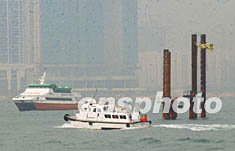 香港高等法院判決保護海港協(xié)會向高院申請暫緩中環(huán)第三期填海工程訴訟敗訴后,政府表示將會恢復有限度填海,但只會挖淤泥,不會進行打樁的工程。圖為渡輪在填海工程樁柱旁經(jīng)過。作者:洪少葵