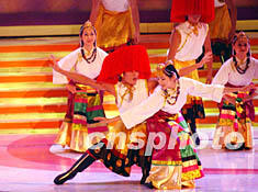 在香港慶祝中華人民共和國54周年國慶文藝晚會上,一臺融合中西音樂、舞蹈、歌唱、軍操及武術表演的綜藝節(jié)目,令觀眾目不暇給。圖為精彩紛呈的舞蹈《春回大地樂全城》。作者:洪少葵