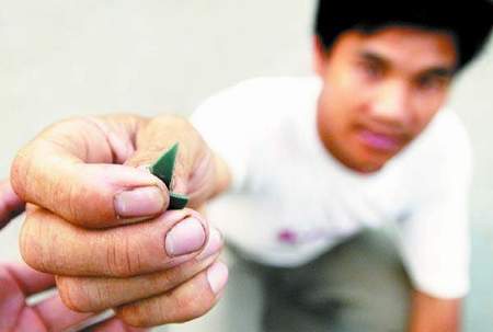 曾先生說,他在驚嚇過后才覺得全身麻痛,仔細檢查才發(fā)現(xiàn)自己多處掛彩。一些小碎片嵌進肌肉里,身上綻開多道血痕。他從右腿傷口拔出一塊指甲蓋大小的硬質墨綠色碎片,告訴記者這就是爆炸的不明物體。
