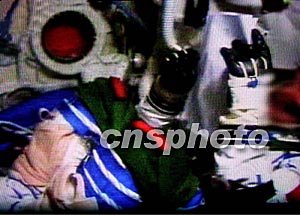 中國即將登乘神州五號(hào)載人飛船的宇航員,進(jìn)行了最后的艙內(nèi)訓(xùn)練。中新社記者:賈國榮
