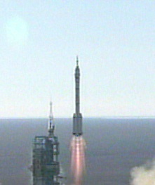 中新社酒泉十月十五日九時(shí)電 本社記者孫自法在酒泉衛(wèi)星發(fā)射中心載人航天發(fā)射場(chǎng)現(xiàn)場(chǎng)報(bào)道,北京時(shí)間十五日上午九時(shí)整,中國(guó)第一艘載人飛船“神舟”五號(hào)從此間載人航天發(fā)射場(chǎng)發(fā)射升空。