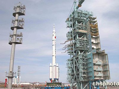 巍然聳立的發(fā)射塔架正翹首以待 “神舟”“神箭”