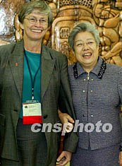 中國國務(wù)院副總理吳儀十五日在北京人民大會堂會見聯(lián)合國兒童基金執(zhí)行主任貝拉米。中新社記者:毛建軍