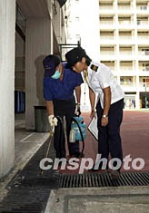 香港當局為加強預防登革熱的工作,教育統(tǒng)籌局及食環(huán)署現(xiàn)正進行為期一星期的巡視學校行動。圖為食環(huán)署人員十六日在梁式芝書院操場的水渠噴灑蚊油。中新社圖