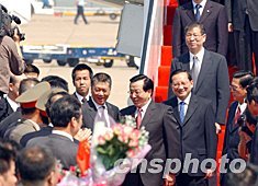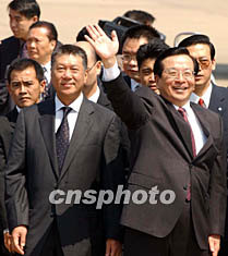 十月十七日國家副主席曾慶紅蒞臨澳門訪問,國務委員唐家璇,全國政協(xié)副主席、國務院港澳辦主任廖暉隨同抵達。中新社記者:潘索菲