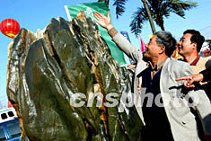 數(shù)件長江三峽巨石在北京展出,顏色翠綠,其間的白玉條紋為巨石增色,盡顯華貴,引來不少奇石愛好者圍觀。北京奇石藝術(shù)博覽會于十月十八日至二十七日在花鄉(xiāng)廣場舉行,來自全國各地的近二十萬件奇石將令觀眾大飽眼福。中新社記者:張宇