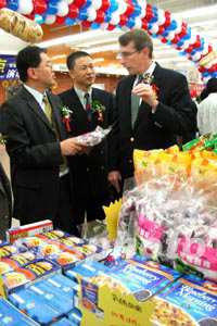 昆明市有關(guān)方面負(fù)責(zé)人、美國駐上?傤I(lǐng)事館農(nóng)業(yè)領(lǐng)事孔銳石,以及美國肉類出口協(xié)會、美國馬鈴薯協(xié)會、加州杏仁商會、阿拉斯加海產(chǎn)市場協(xié)會等六家專業(yè)協(xié)會的代表和二百多位市民出席了今天的開幕式。