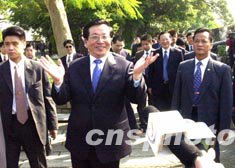 今天的澳門,陽光燦爛,氣候宜人。大三巴牌坊前,游客游興正濃。九時十分左右,曾慶紅在唐家璇、廖暉、何厚鏵等陪同下,來到大三巴牌坊參觀。眾多游客見到國家領(lǐng)導(dǎo)人,立刻涌向前來。曾慶紅熱情地向大家打招呼:“大家好!”