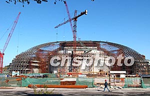 金秋十月,號稱“中國第一藝術(shù)殿堂”的國家大劇院工程建設(shè)進(jìn)展順利,跨度達(dá)二百一十二米的巨大穹形屋頂鋼結(jié)構(gòu)骨架已開始安裝,國家大劇院蛋形輪廓初步顯現(xiàn)。中新社記者:張煒