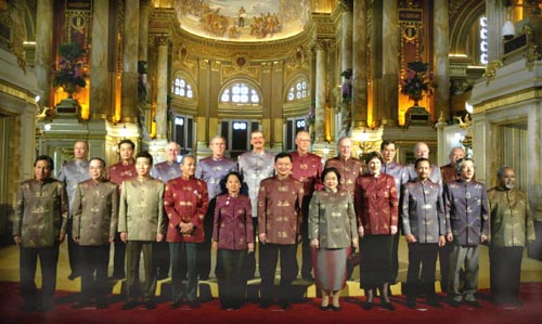 中新網(wǎng)10月21日電 綜合央視國際報(bào)道,今天上午,按照慣例,在泰國曼谷出席APEC領(lǐng)導(dǎo)人非正式會(huì)議的21個(gè)成員的領(lǐng)導(dǎo)人身著泰國民族服裝拍攝“全家!。