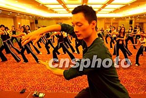 參加新絲路世界模特大賽的各國(guó)佳麗,十月二十七日在杭州跟隨中國(guó)教師學(xué)太極。中新社記者:賈國(guó)榮