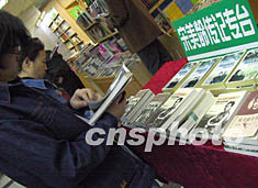 北京讀者二十八日在王府井新華書店的宋美齡傳記專臺前駐足觀看。宋美齡10月24日在美國逝世后,中國內(nèi)地出版社和書店迅速推出有關(guān)宋美齡的傳記書籍,引起讀者的廣泛關(guān)注。作者:易永明