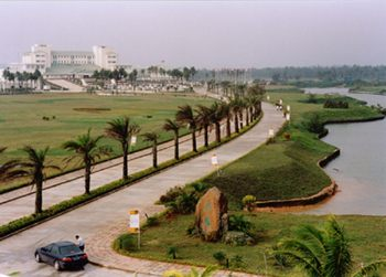 博鰲港,港域遼闊,地勢險要,水情復雜,它是萬泉、龍滾、九曲三條河流匯攏而來,繼而流入大海的必經之口,萬泉河出?谥杏袞|嶼、鴛鴦兩個島嶼,使博鰲港水中有島,島中有水,波光錯落,景色秀麗。這里,沙灘廣闊平坦,柔軟潔白;海面水色湛藍,港門巖 群屹立;海岸綠林成帶,椰樹挺空,炊煙裊裊。遠眺這綿蜒10多里的海灣灘岸,無異于上蒼編織的一條五彩繽紛的綢帶,不少中外旅游名家認為,這里是世界上河流出?谧匀痪坝^保持最完美的一個地方。