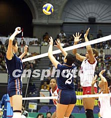 中國女子排球隊十一月三日下午在日本鹿兒島進行的世界杯賽事中,直落三局輕取剛剛露出“黑馬”之相的多米尼加隊。中國女排拿手的快攻戰(zhàn)術令對手防不勝防。中新社記者:王健