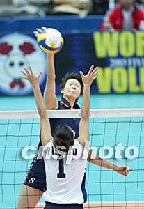 2003年11月9日,中國(guó)女排在日本富山進(jìn)行第九屆女排世界杯賽比賽中,以3比0擊敗阿根廷隊(duì),取得了七連勝。圖為趙蕊蕊快球進(jìn)攻。中體在線/供圖