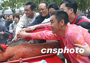 影片公司高層人士向華強(qiáng)在拜神儀式上。 中新社記者:錢興強(qiáng)