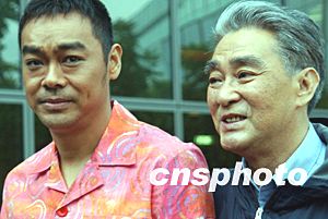 香港明星劉青云、梁詠琪十一月十日在香港舉行的電影《絕世好賓》開鏡拜神儀式上。中新社記者:錢興強(qiáng)
