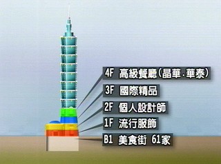 據(jù)悉,臺北101大樓中所有精品店的裝潢都是業(yè)者自己依照各品牌的需求設(shè)計,由于追求精致華麗,因此每坪要價至少在30萬至50萬新臺幣間,因此每個精品業(yè)者光在裝潢上就投注了上百萬(新臺幣)的經(jīng)費。