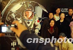 十一月十五日,夢系太空——人類航天事業(yè)歷程與成就展在北京中國科技館揭幕,來自北京華文學(xué)院的海外僑生們興致勃勃與心儀已久的太空英雄楊利偉合影留念。中新社記者:武仲林