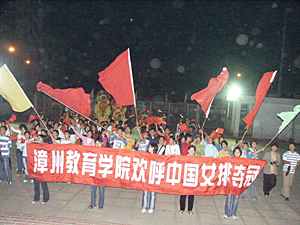 福建漳州是中國女排的集訓(xùn)基地。中國女排自一九七六年在排球之鄉(xiāng)漳州組建后,每年都要到漳州進(jìn)行集訓(xùn)。二十七年來,無論是在中國女排處于起步之時(shí),還是走向輝煌時(shí)期,或是陷入低谷階段,漳州人民對于中國女排姑娘都給予了無微不至的關(guān)心與支持。對此,中國女排姑娘親切地把漳州稱為自己的“娘家”。
