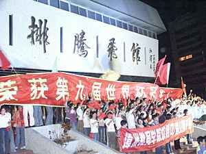 中國女排此次出征日本參加第九屆女排世界杯賽牽動(dòng)著漳州人民的心。今年十月月二十五日,中國女排出征前一天,漳州市委書記袁榮祥親自打電話給中國女排主教練陳忠和,預(yù)祝中國女排在比賽中一切順利,再創(chuàng)輝煌。十一月十五日晚,得知中國女排以十一場全勝不敗的戰(zhàn)績最終捧回了闊別十七年的世界冠軍獎(jiǎng)杯,漳州各界群眾歡欣鼓舞,紛紛走上街頭慶祝。當(dāng)晚十九時(shí),中共漳州市委、漳州市政府,中共漳州市委書記袁榮詳、漳州市市長何錦龍,中國女排主教練陳忠和的家鄉(xiāng)漳州龍海市委、市政府分別向中國女排及陳忠和發(fā)去賀信、賀電,祝賀中國女排再奪桂冠。
