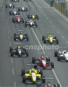 澳門三級方程式大賽車激烈進行中澳門第五十屆格蘭披治大賽車十六日舉行本屆最重要賽事--三級方程式大賽,圖為比賽激烈進行中。中新社記者:李剛